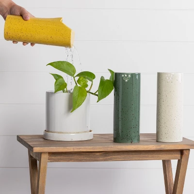 - Brighten up your spring gifting with the Transpac Ceramic Plant Shower Set of 3, featuring vibrant multicolor planters perfect for indoor tabletop decor, each measuring 8″ in height and made from durable dolomite.