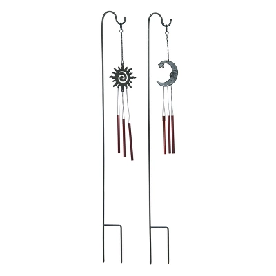 - Beautifully designed set of 2 Iron Sun and Moon Wind Chime Yardstakes to enhance your garden decor.
