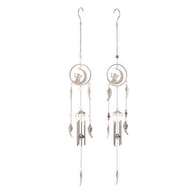 - Charming set of 2 fairy chimes featuring delicate bells and wind chimes for a whimsical touch to your outdoor decor. Made from durable metal and plastic, ensuring long lasting beauty and functionality in various weather conditions. Elegant silver finish adds a stylish accent to your walls, perfect for enhancing gardens, patios, or porches. Ideal for gift giving, hostess gifts, or personal decoration, easy to maintain with simple spot or wipe clean care instructions.