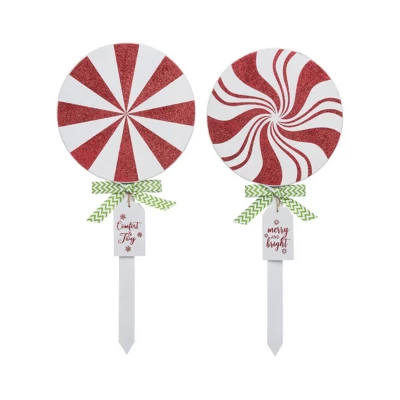 - Set of 2 decorative garden stakes featuring a festive peppermint design, perfect for adding a cheerful touch to your holiday decor.