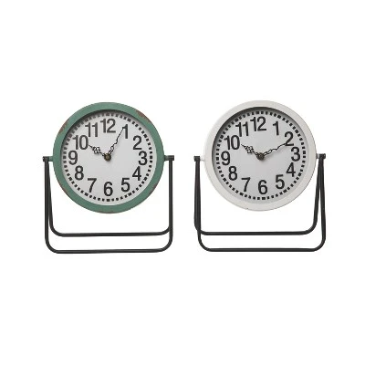 - Elevate your home decor with the Transpac Metal Clock Set of 2, perfect for gift giving this season, featuring vibrant multicolor designs that add a stylish touch to any indoor tabletop.