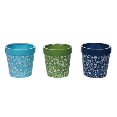 Introducing the Transpac Terracotta Dainty Floral Flower Pot Set of 3, a charming addition to your home decor this spring. These beautifully crafted planters feature a delightful multicolored floral design that brings a touch of nature indoors. Perfect for displaying your favorite plants or flowers, these terracotta pots are ideal for tabletops, windowsills, or any space that needs a pop of color. Each pot is designed for indoor use, making them perfect for brightening up your living room, kitchen, or office. With easy care instructions, simply spot or wipe clean to maintain their beauty. This set makes a thoughtful gift for plant lovers, ideal for hostess gifts or special occasions. Elevate your home decor with these lovely flower pots and enjoy the vibrant spring vibes they bring.
