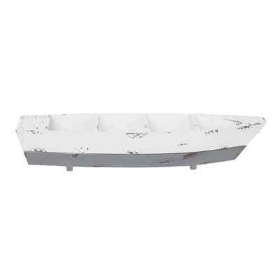 - Enhance your spring decor with the TS02916 Transpac Wood Boat, a charming 22.5inch decorative sculpture made of white wood, perfect for tabletop display.